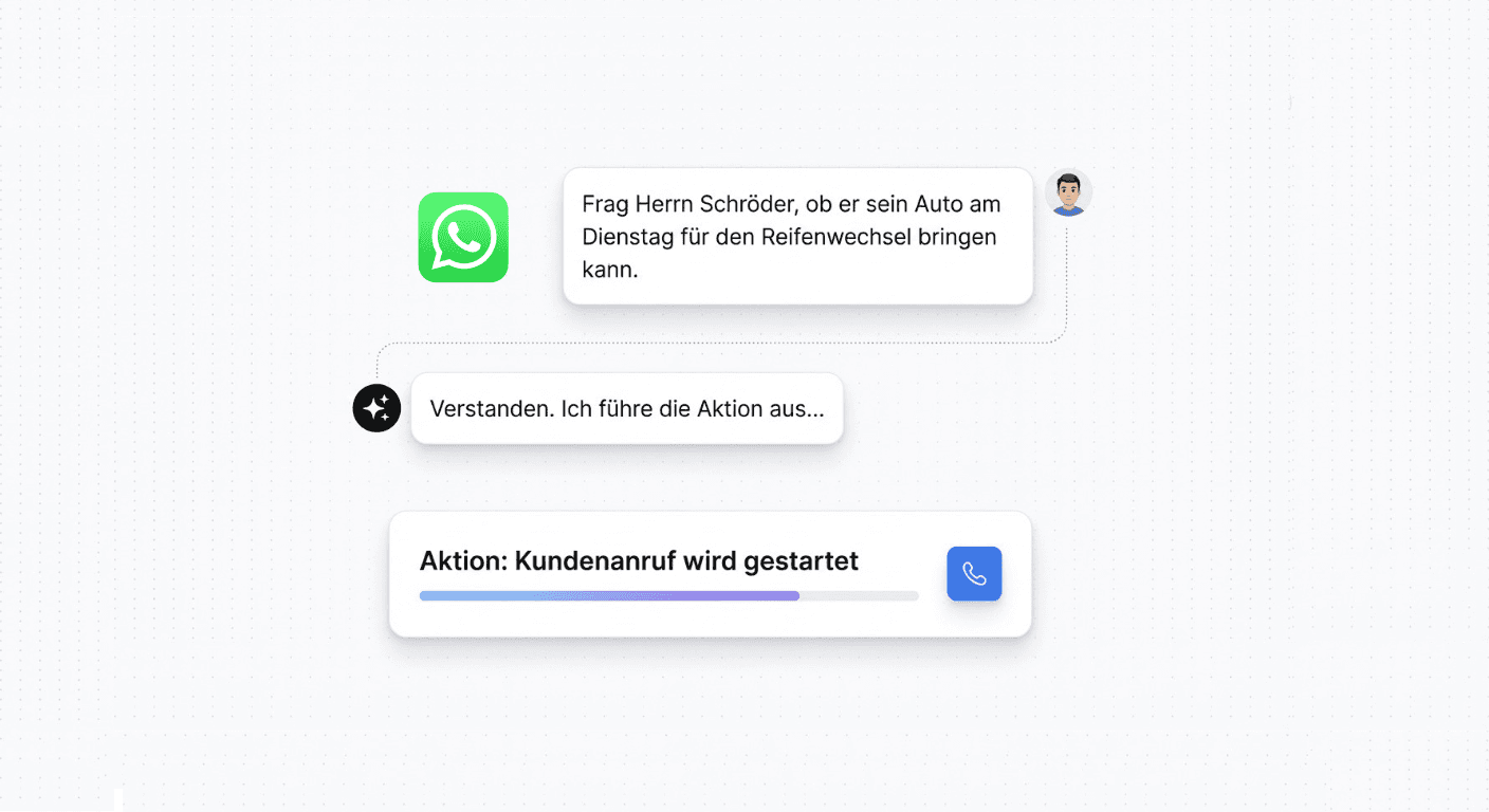 Ob Kundenservice, interne Prozesse oder individuelle Abläufe - SpeakwiseAI passt sich deinem Unternehmen an. Automatisiere deinen eigenen Use-Case mit nur wenigen Klicks.