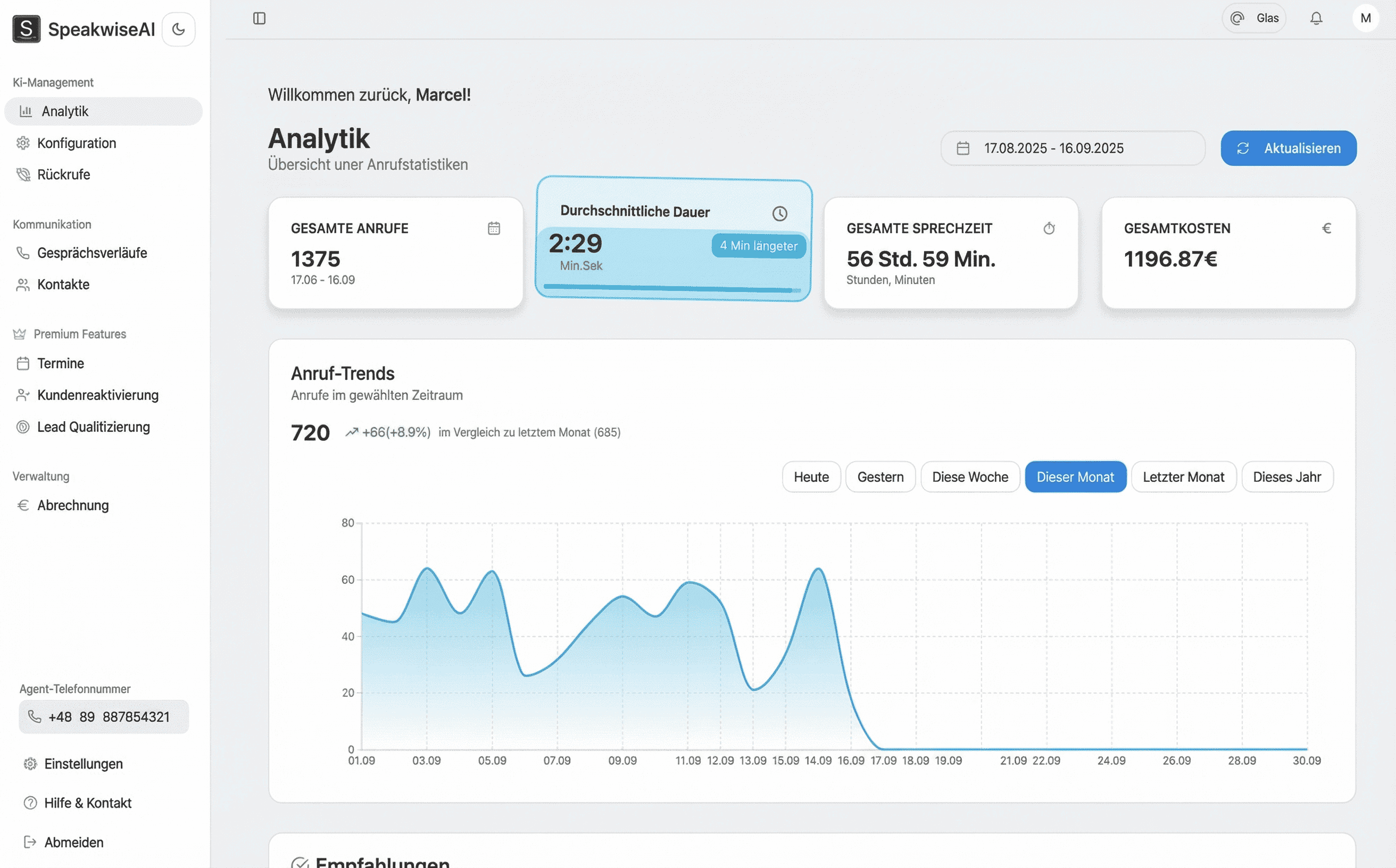 Bessere Erreichbarkeit, weniger Aufwand: Unsere KI-Telefonassistenten übernehmen wiederkehrende Telefonate freundlich und professionell. Einfach eingerichtet, flexibel einsetzbar und sofort startklar.